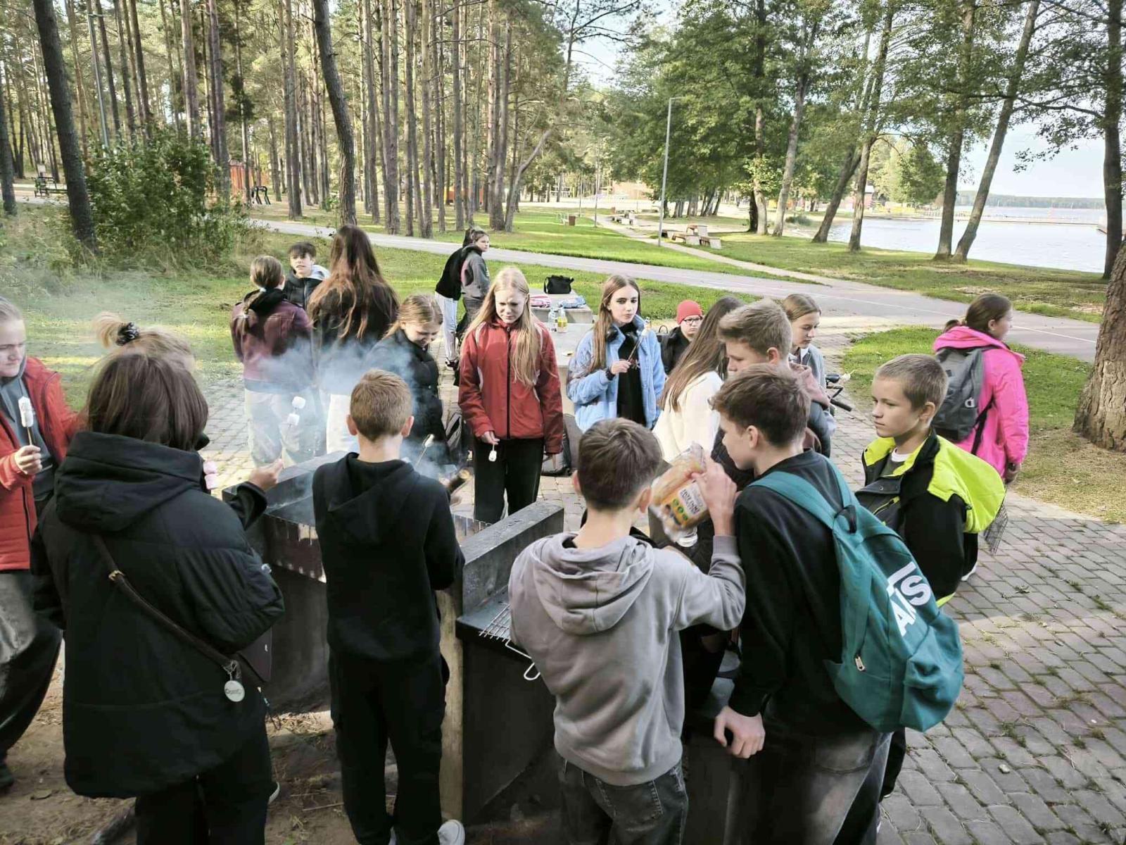 Pēc aktīvām nodarbēm parkā devāmies pārgājienā uz Stropiem. Ceļā baudījām skaisto dabu, vērojām rudens krāsās iekrāsotos kokus un elpojām svaigu gaisu. Pārgājiens bija ne tikai fiziskā aktivitāte, bet arī lieliska iespēja sarunām un kopā būšanai ārpus klases sienām.