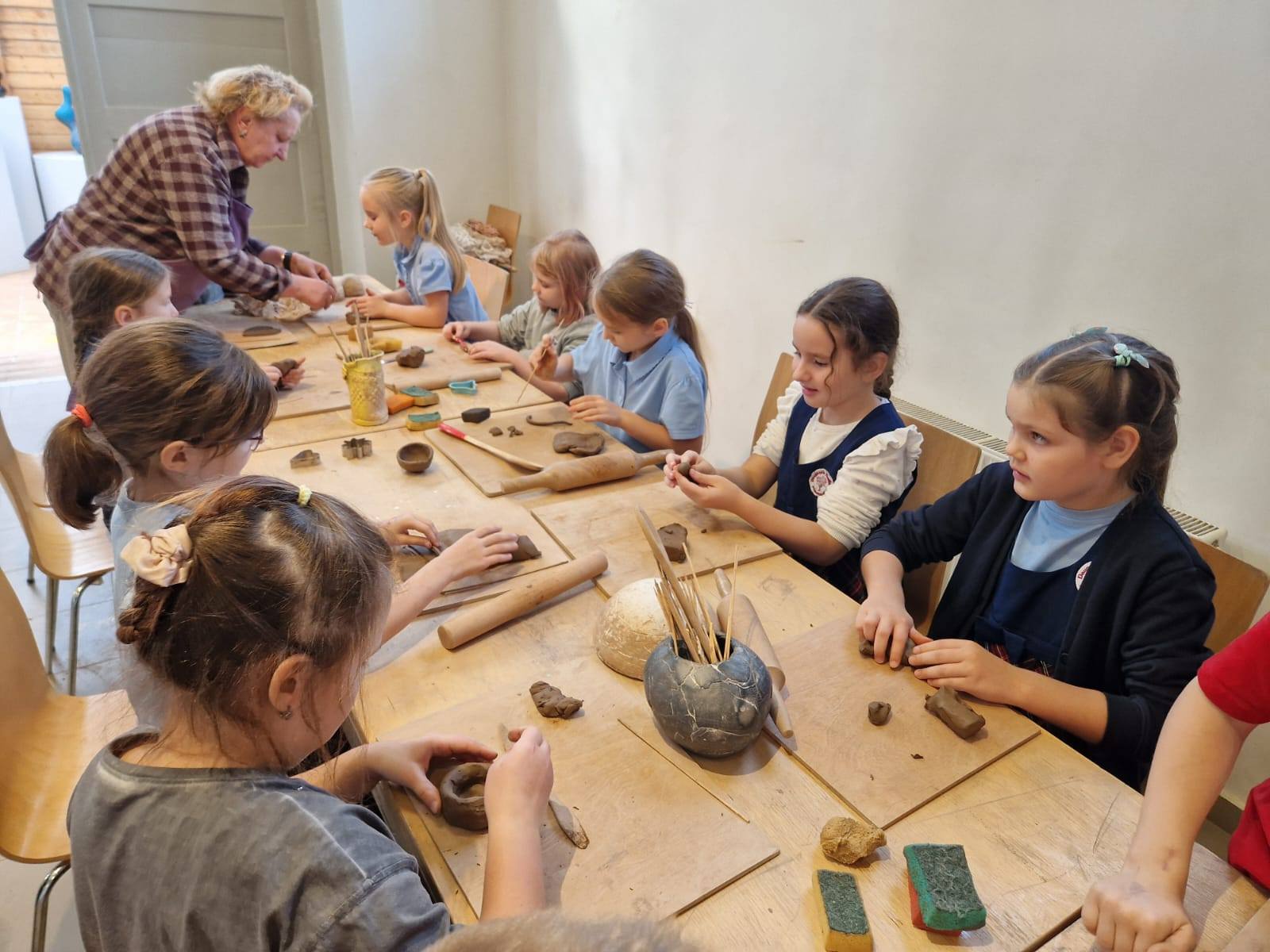 Šonedēļ mūsu 2.b klases skolēni kopā ar klases audzinātāju Marinu devās radošā ceļojumā uz Māla centru, lai teorētiskās zināšanas no dizaina un tehnoloģijas stundām pārvērstu taustāmos mākslas darbos! Apmeklējums sākās ar aizraujošu keramikas eksponātu apskati, kur skolēni iepazinās ar dažādām formām, glazūrām un māla veidiem. Vislielākais prieks , protams, bija darbnīca! Katrs skolēns kļuva par mazu amatnieku, veidojot savu unikālo māla izstrādājumu. Dizains un tehnoloģijas nav tikai mācību priekšmets – tā ir iespēja radīt, eksperimentēt un iemācīties pārvērst savas idejas realitātē! Un paldies Daugavpils Māla centram par tādu lielisku pieredzi!