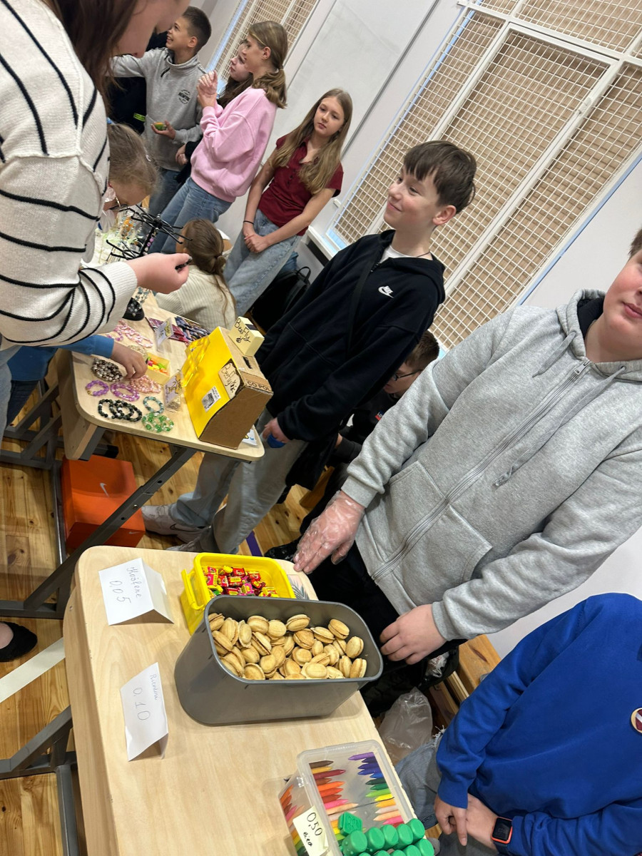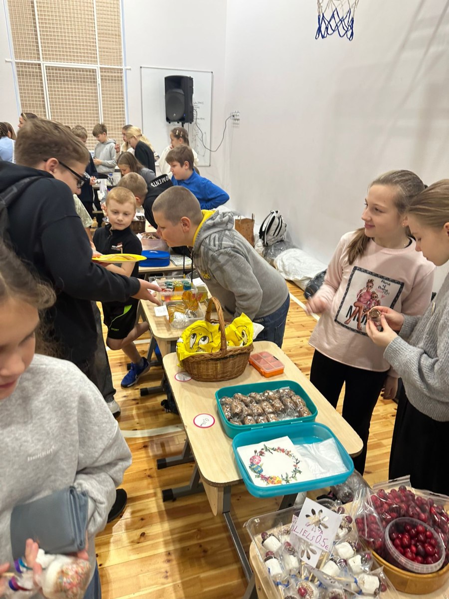 Līdztekus aktivitātēm skolas gaiteņos norisinājās tirdziņš, kurā skolēni tirgoja pašu sarūpētus gardumus, rokdarbus un dažādus radošus darinājumus. Īstu sajūsmu radīja skolas direktores, vadības komandas, skolas lietvedes un datorikas skolotāja stends, kur īpašā veidā tika pasniegti gardumi – tos varēja “iegādāties” apmaiņā pret zināšanām. Skolēni labprāt atbildēja uz dažādiem āķīgiem jautājumiem, minēja mīklas un pierādīja savas zināšanas, lai tiktu pie kārota našķa. Tas radīja ne tikai saldu prieku, bet arī neparastu un neaizmirstamu mācīšanās pieredzi.
