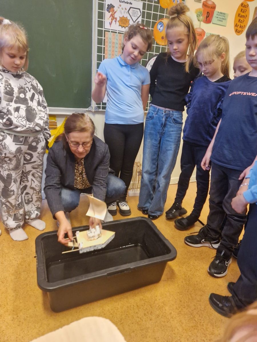 Savukārt 1. klases skolēni dabaszinību stundā devās aizraujošā atklājumu ceļojumā, pētot materiālu daudzveidību. Stundas laikā klasē valdīja zinātkāre un prieks par kopīgu darbošanos . Skolēniem bija iespēja izpētīt uz salīdzināt dažādus materiālus pēc izturības, elastības, cietības un siltumvadītspējas. Katrs eksperiments kļuva par mazu piedzīvojumu, kurā bērni ne tikai ieguva zināšanas, bet arī mācījās sadarboties, klausīties un pareizi pierakstīt iegūtos pētnieciskos datus. Šī pieredze deva bērniem ne vien zināšanas, bet arī iedvesmu turpmākai materiālu izpētei.