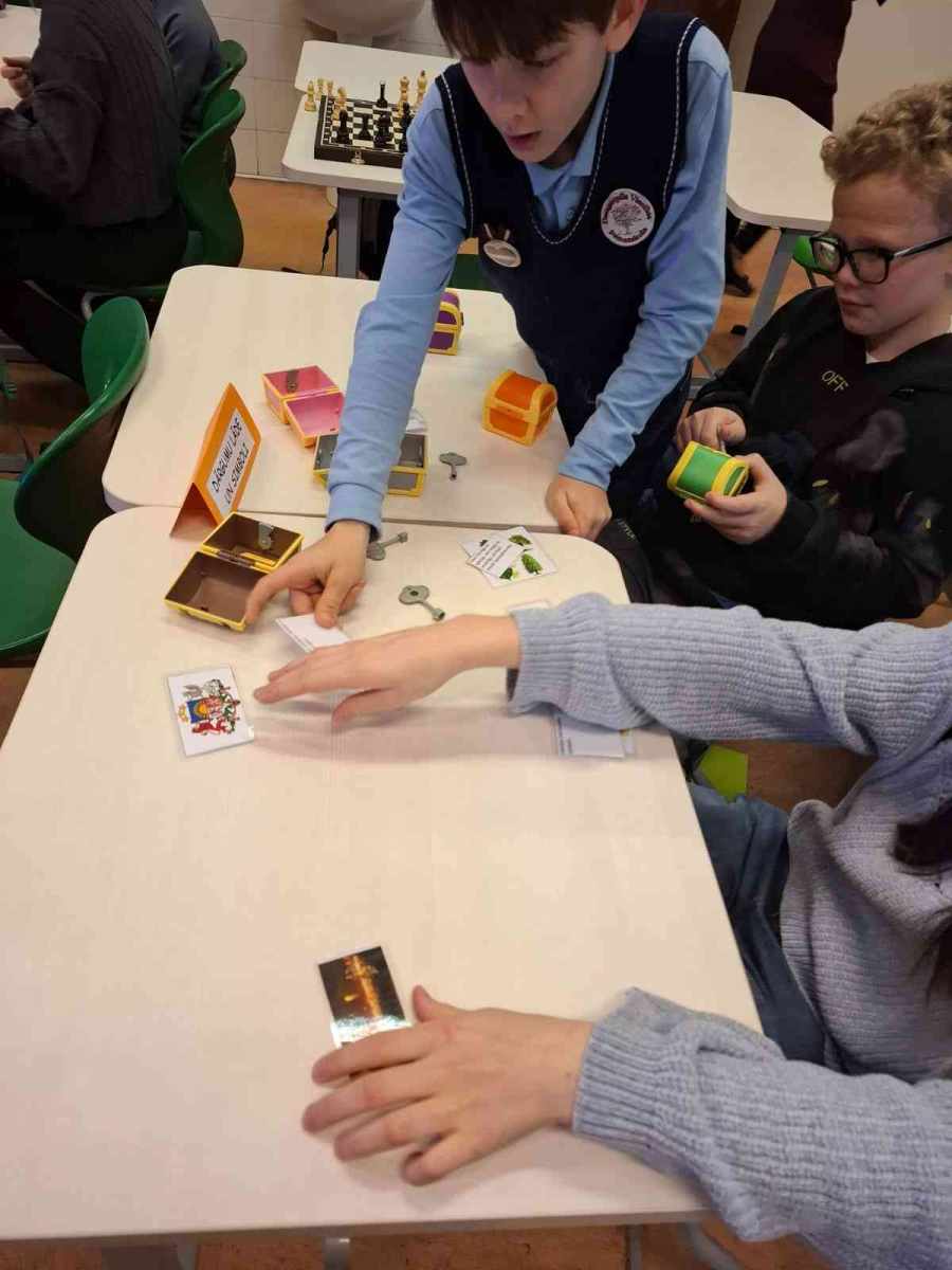 Trešajā darbnīcā “Dārgumu lādītēs” skolēni pārvērtās par detektīviem. Uz galda viņus gaidīja dārgumu lādītes ar slēdzenēm, atslēgas un attēli. Katra lādīte bija kā mazs noslēpums – jāatrod īstā atslēga, jāizlasa teikums un jāatrod tam atbilstošais attēls. Skolēni strādāja rūpīgi un, tikuši pie pareizā risinājuma, ar lepnumu devās tālāk.