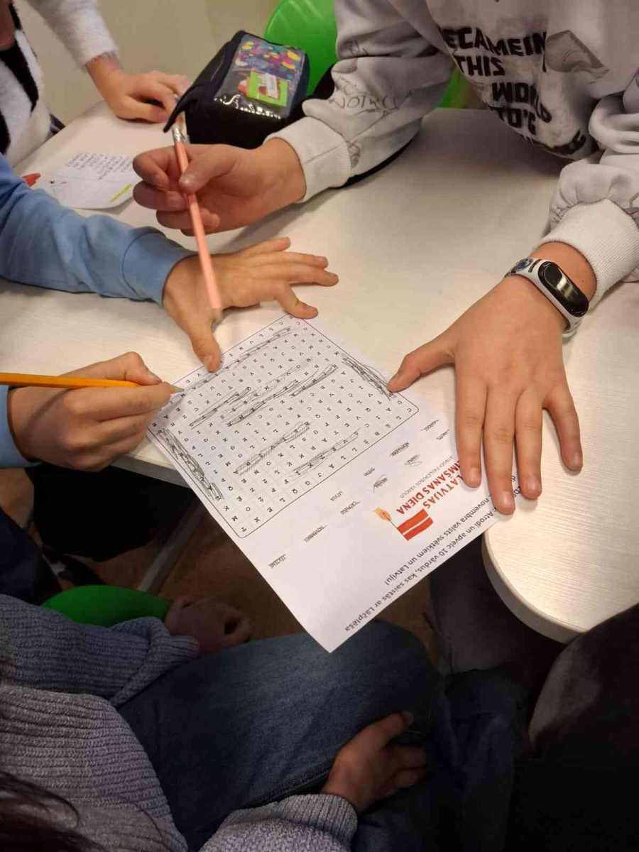Ceturtajā darbnīcā “Burtu režģis” skolēnus gaidīja prāta izaicinājums – burtu jūklī bija paslēpti 10 vārdi par Latviju un novembri. Lasot un meklējot vārdus, bērni parādīja apņēmību un prasmi strādāt mērķtiecīgi.