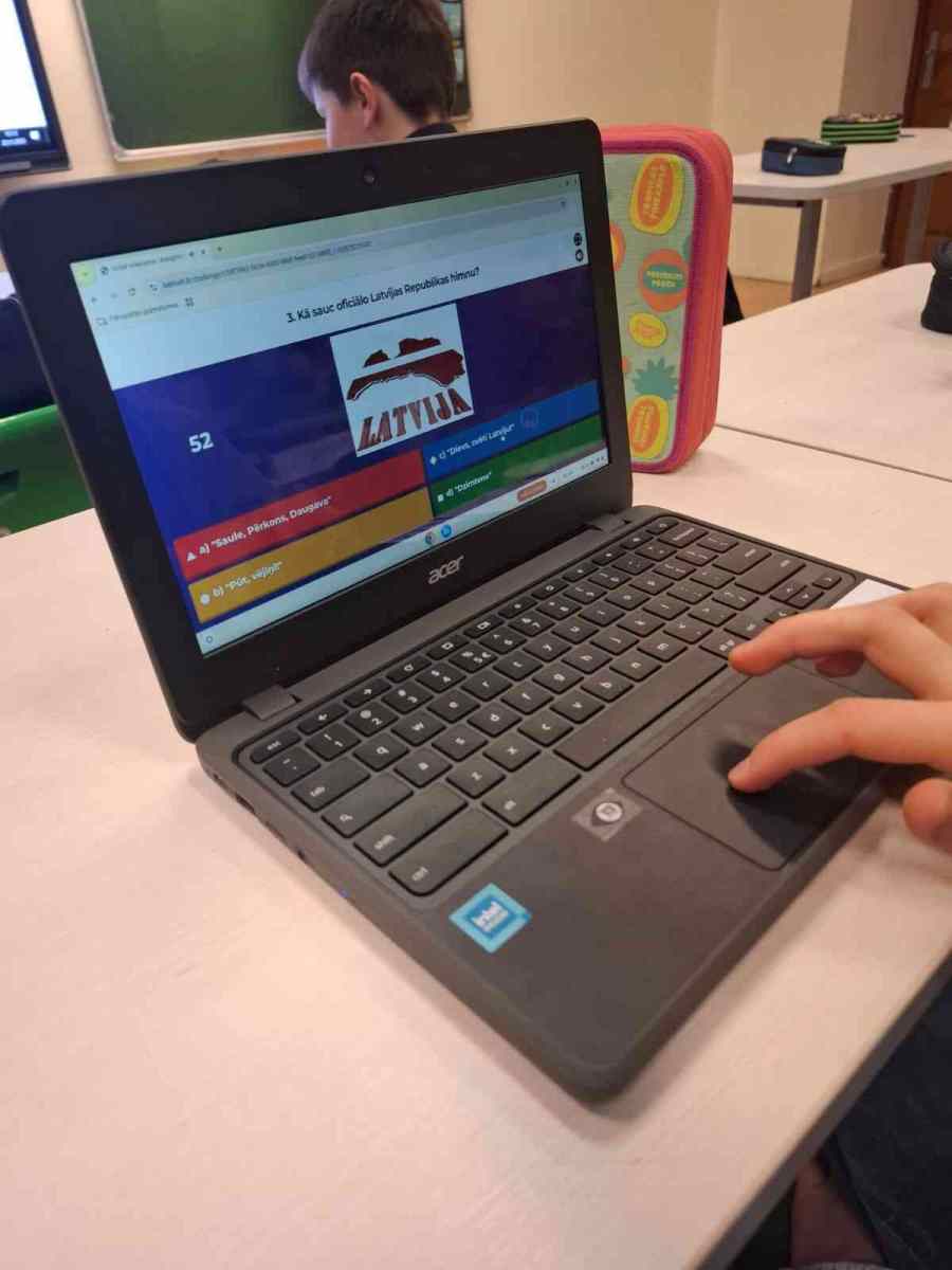 Kad visas četras stacijas bija izpildītas, 4. klase devās uz dienas noslēguma aktivitāti – Kahoot spēli. Ar planšetdatoriem rokās skolēni azartiski sacentās par to, kurš vislabāk atcerējās Latvijas faktus. Dienas noslēgumā staroja smaidi, medaļas un lepnums – sajūta, ka Latvija šodien kļuvusi vēl tuvāka.