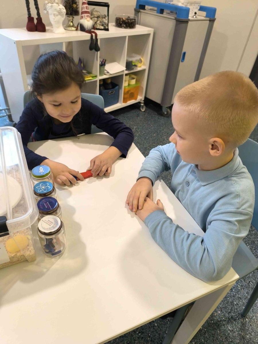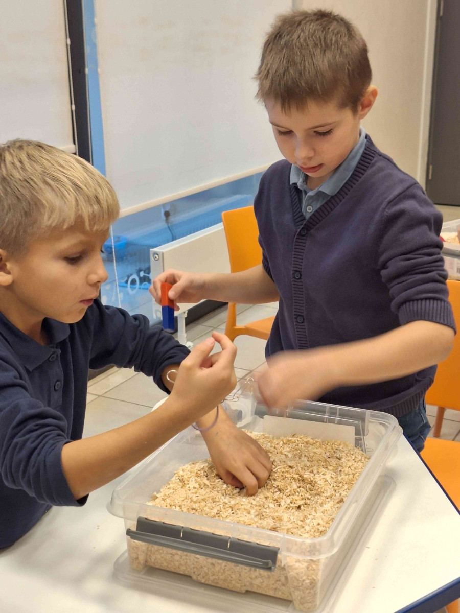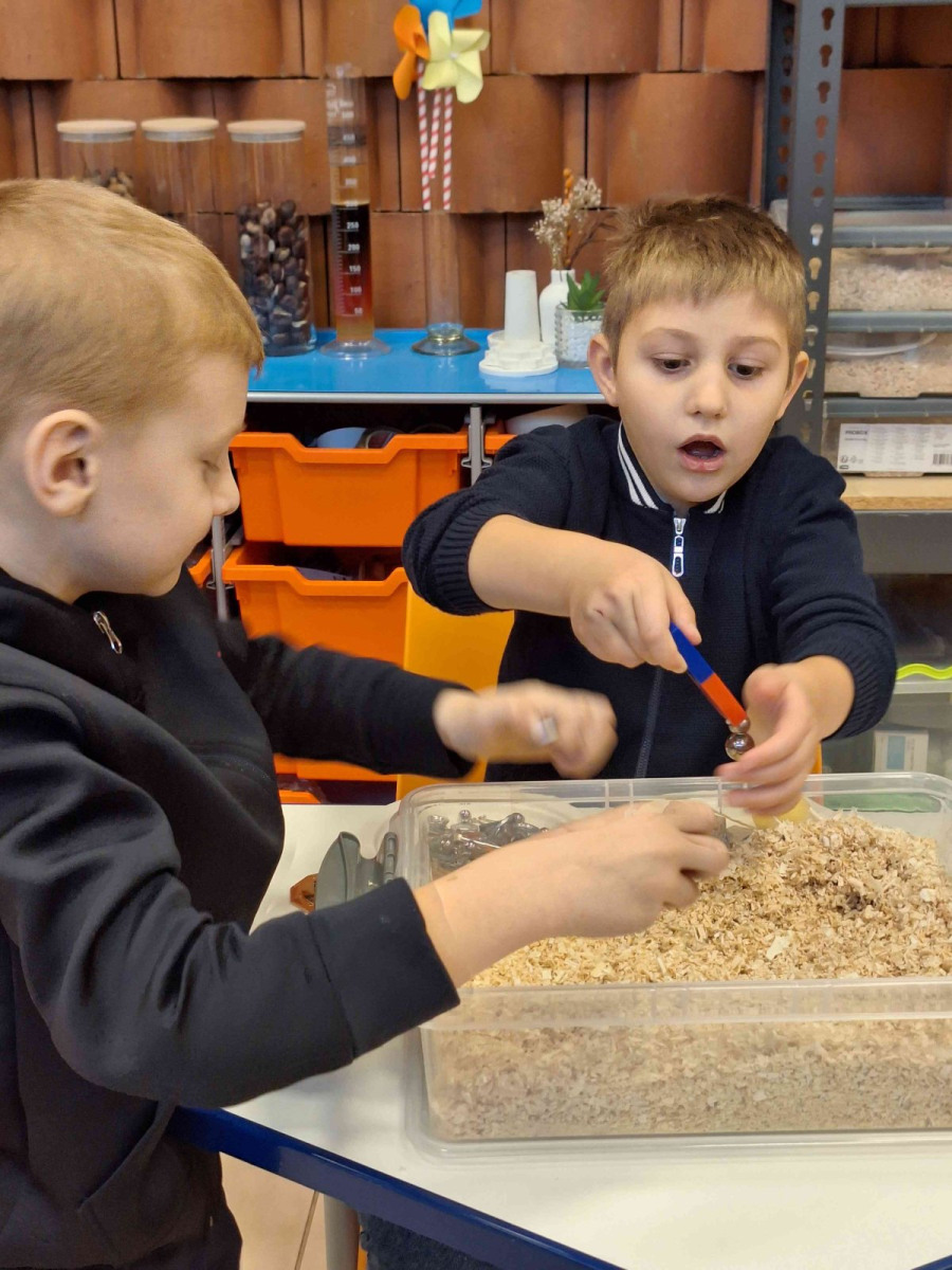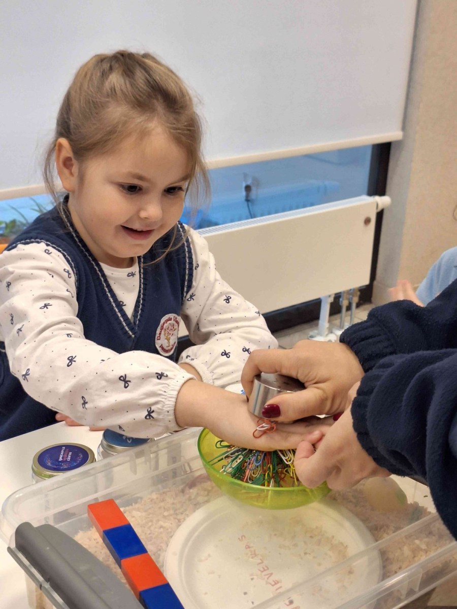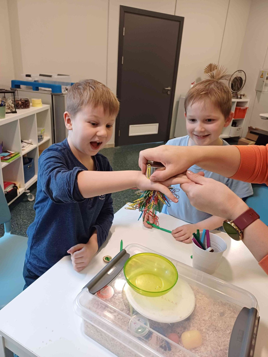 Īpaši lielu sajūsmu radīja eksperiments ar dažādu formu un izmēru magnētiem. Skolēni pārbaudīja, kā magnēti iedarbojas caur plaukstu un citām virsmām. Izglītojamie bija pārsteigti par iespēju katram izjust savas “superspējas”.
