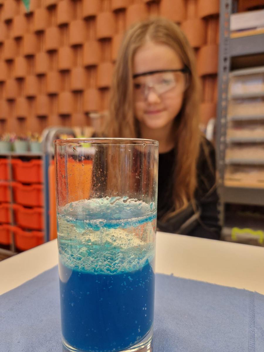 Bērni ar lielu interesi un izbrīnu vēroja balonu piepūšanos, eļļas burbuļu veidošanos ūdenī, putu “izvirdumus” un gāzu rašanos. Praktiskā darbošanās palīdzēja labāk izprast, kā vielas var sajaukties, reaģēt cita ar citu un mainīt savu stāvokli. Īpaša uzmanība tika pievērsta drošībai – skolēni strādāja ar aizsargbrillēm un mācījās atbildīgu rīcību eksperimentu laikā.