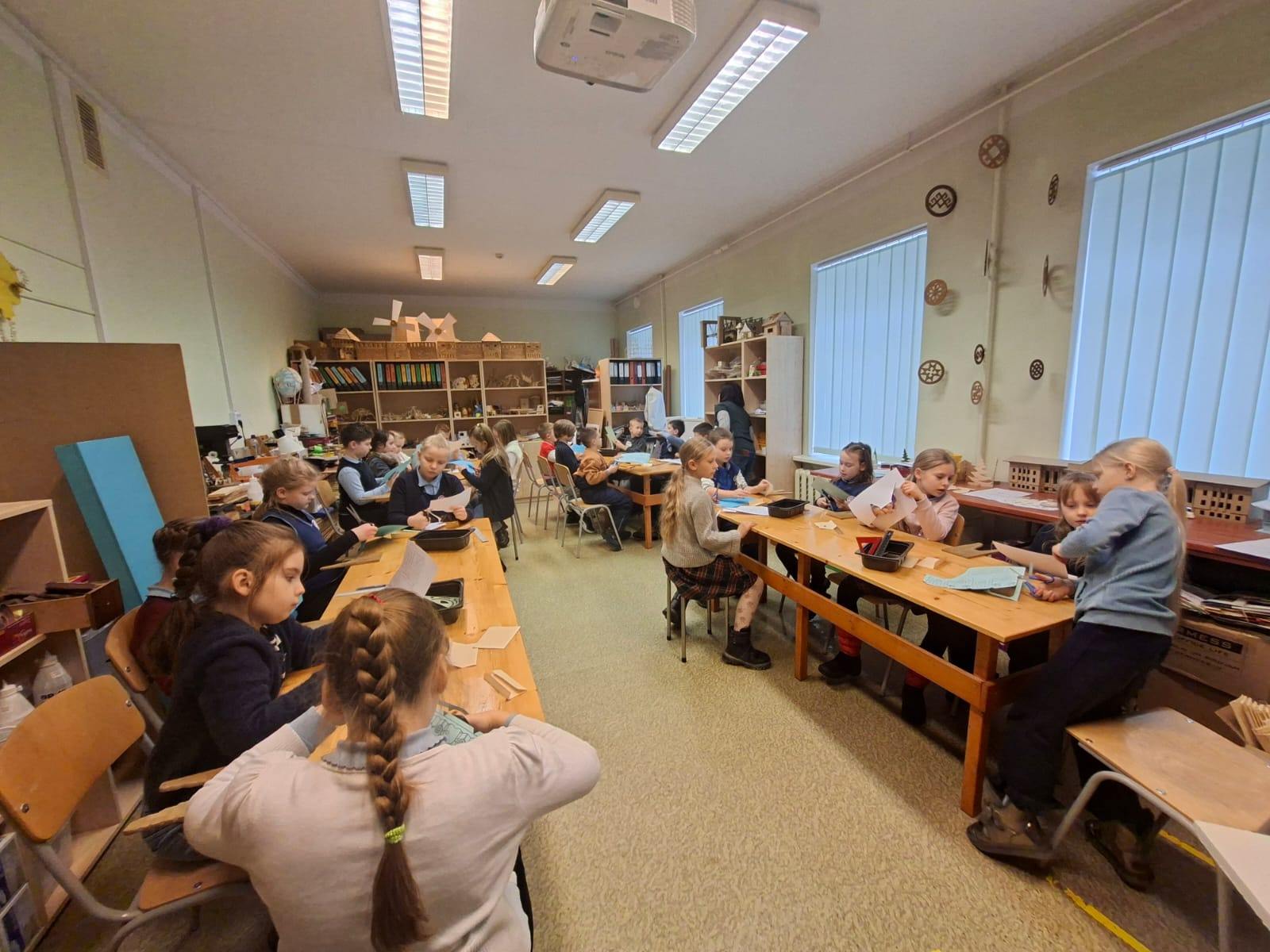 Uzreiz pēc ziemas brīvlaika 2.b un 2.c klases skolēni apmeklēja BJC ”Jaunība”, kur piedalījās starpdisciplinārā dizaina un tehnoloģiju nodarbībā, kas bija veltīta papīra apstrādes tehnikām. Nodarbības laikā skolēni atkārtoja, ka papīru iespējams apstrādāt dažādās tehnikās, praktiski iemācījās jaunu locīšanas paņēmienu ar lineāla un pildspalvas palīdzību, tostarp, izmēģināja locīšanu, griešanu un līmēšanu, veidojot telpiskas ziemas mājiņas. Bērni apguva, kā, lokot un griežot papīru dažādos virzienos, iespējams iegūt noteiktas formas un tēlus, kā arī saprata, kā no plakana materiāla rodas telpisks objekts. Nodarbības laikā interešu pulciņa skolotāja Anfisa Labute veicināja skolēnu prasmi novērtēt paveikto darbu, saskatīt, kas izdevies vislabāk, domāt par iespējamiem uzlabojumiem. Radošais darbs paplašināja skolēnu izpratni par dizaina procesu un parādīja, ka papīrs ir daudzveidīgs materiāls, ar kuru iespējams radīt gan estētiskus, gan praktiskus darbus. Pateicamies centram par sadarbību!