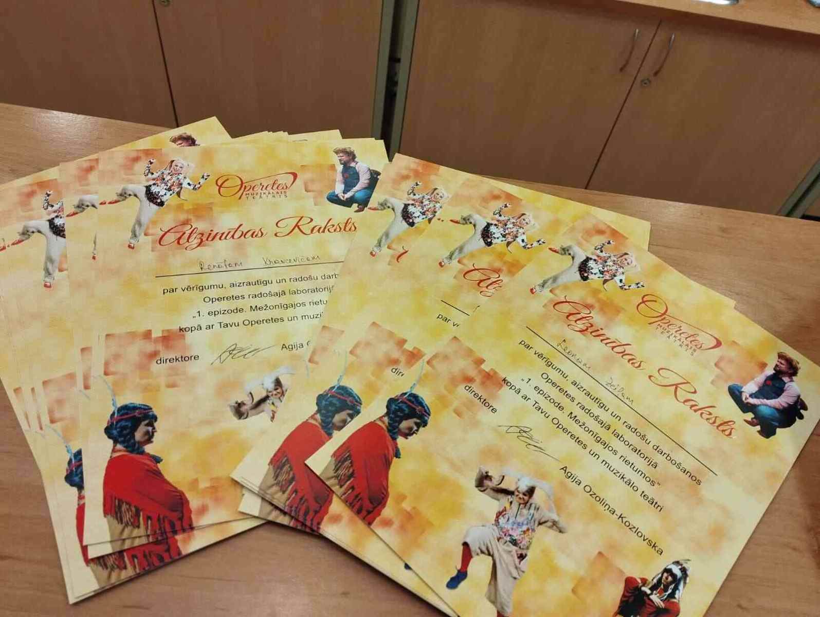 Nodarbības noslēgumā katrs skolēns saņēma arī īpašu Operetes teātra Atzinības rakstu par aktīvu, radošu un ieinteresētu dalību “Operetes radošajā laboratorijā”. Diplomi skolēniem sagādāja patiesu prieku un lepnumu. Tie būs ne tikai piemiņa par aizraujošo 3D pieredzi, bet arī apliecinājums viņu zinātkārei un drosmei izmēģināt ko jaunu.